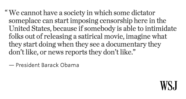 @WSJ: Obama on Sony pulling The Interview: "I think they made a mistake." http://on.wsj.com/13KjjE8 pic.twitter.com/KdRJ9yMCUn”#ibelieve