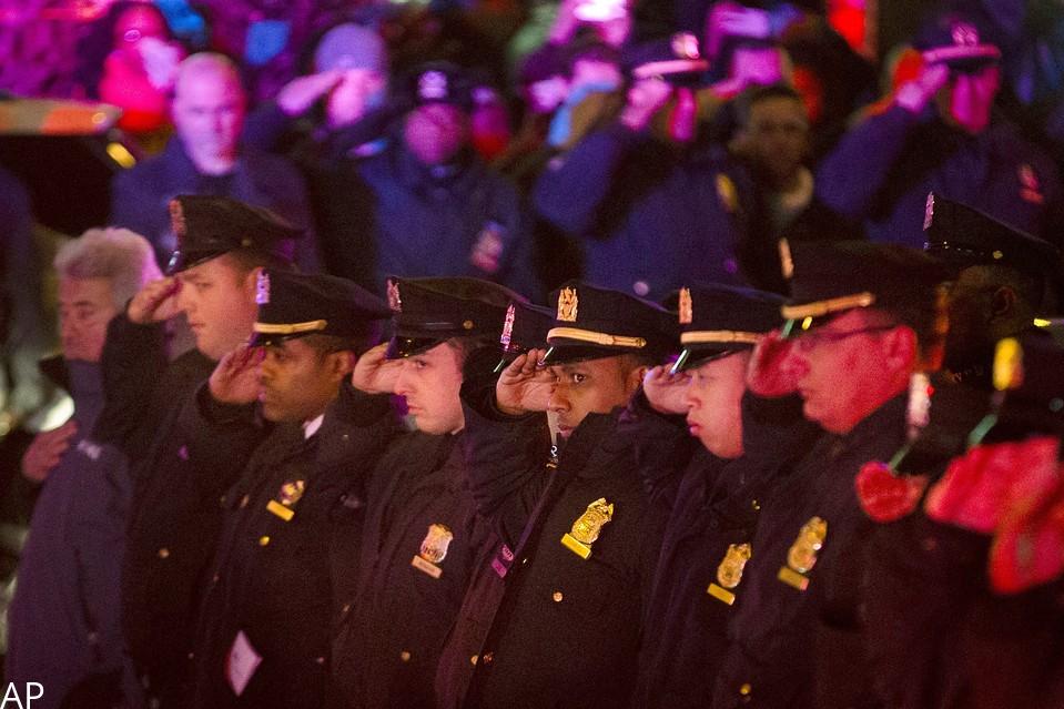 @WSJ:#NYPD mourners stood at attention as slain officers were transported from hospital: http://on.wsj.com/1xB3ITG pic.twitter.com/gOFJBeQdf9