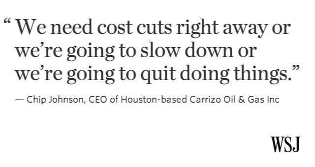 “@WSJ: After plunge in oil prices, energy companies cutting budgets & weighing layoffs. http://on.wsj.com/1JU2OWr ”