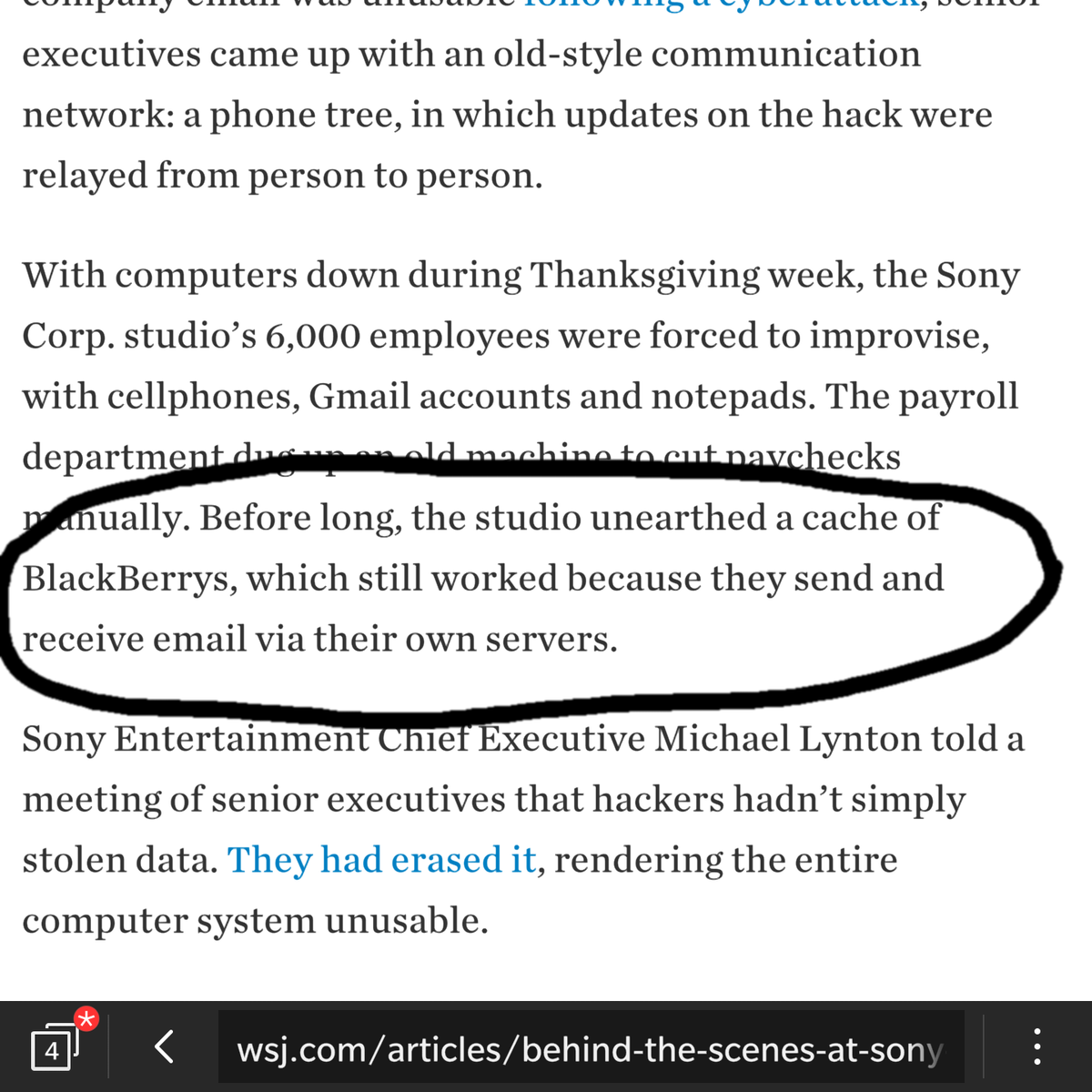 @WSJ @erichschwartzel Sony used old technology to carry on internal business during hack. Every company needs contingency plan.