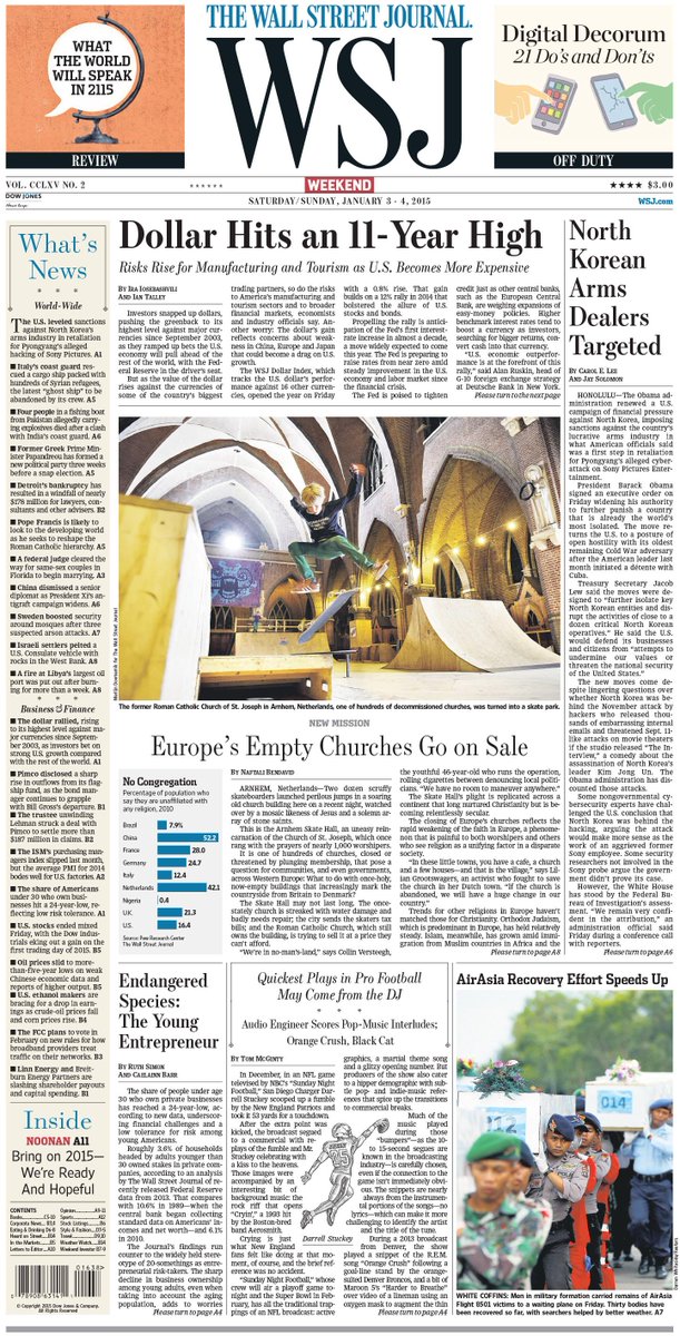 The dollar at 11 year high "@WSJ: Here is an early look at the front page of today's Wall Street Journal pic.twitter.com/YgcNUPI0xu”