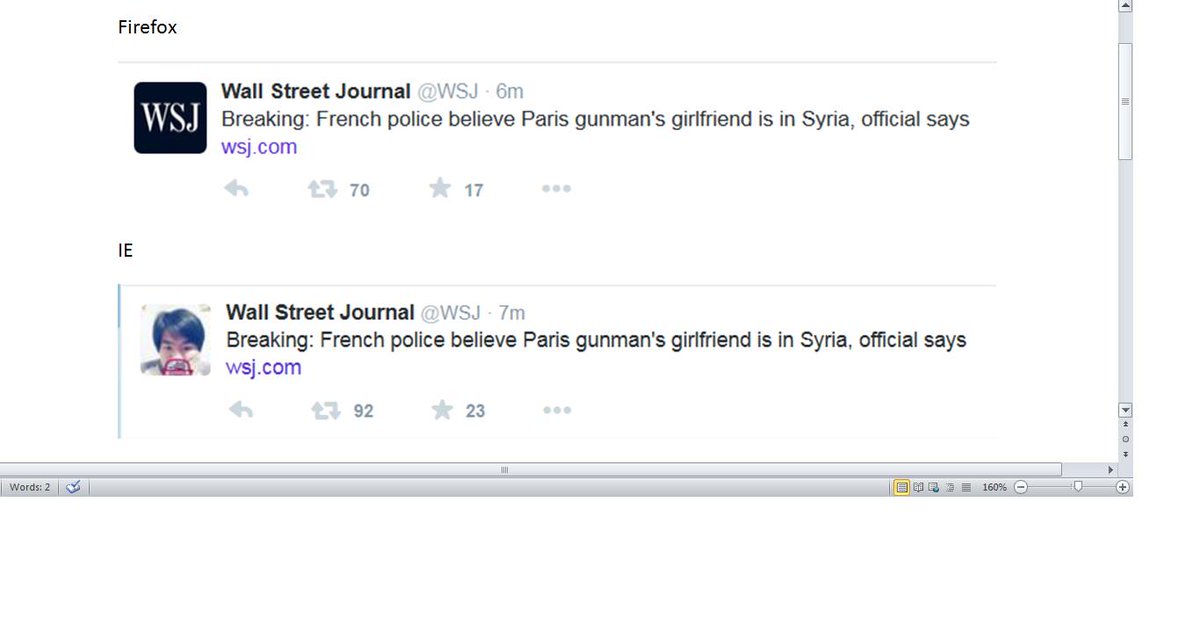 @lerram@WSJ Using Firefox I see "WSJ". Using IE I see that weird person (see photo)pic.twitter.com/x5KLt9Uf8W