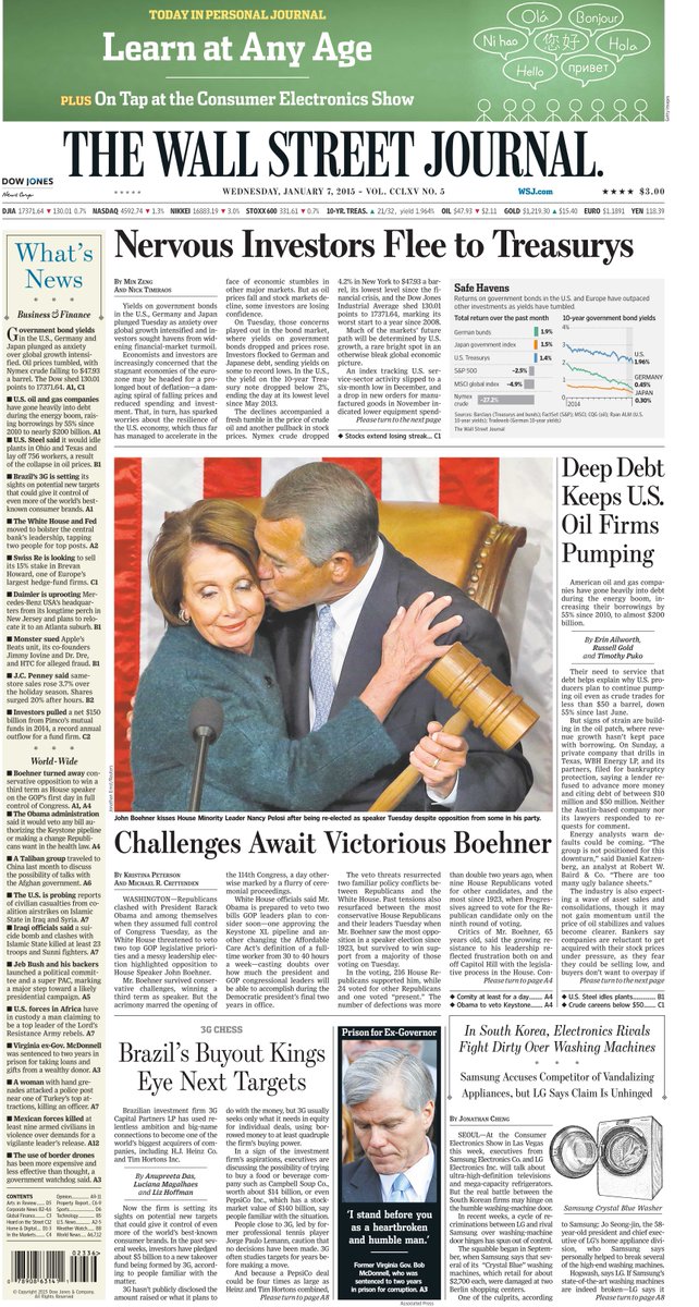 7日のウォールストリートジャーナル1面、この写真の意味はなんなのか? @WSJ: Today's front page http://www.wsj.com pic.twitter.com/hdS4mC6RRv”