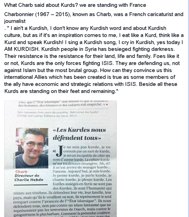 @WSJ#ParisShooting wake up call 2all pro#civilsociety why#CharlieHebdo supported#Kobane#resistance vs#ISpic.twitter.com/qbj6dk5DC2