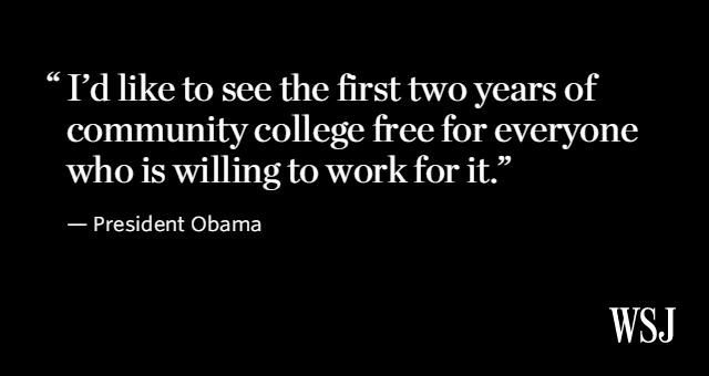 “@WSJ: President Obama calls for two years of free community college for all students. http://on.wsj.com/1xXiGRJ pic.twitter.com/mSN1cX4hTf”
