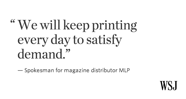 @WSJ: Charlie Hebdo’s new issue flies off newsstands http://on.wsj.com/17GTQNu pic.twitter.com/HcyrQYk1Bw”