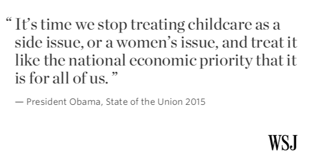 “@WSJ: Obama on childcare: http://on.wsj.com/1JaYtuN #SOTU pic.twitter.com/hajN5LfgnU” This is a Canadian issue as well.
