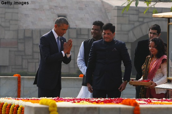 @WSJ: President Obama paid his respects at the Gandhi memorial in New Delhi: http://on.wsj.com/1yGTP6l pic.twitter.com/eZEanyPIoa”#MahatmaGandhi