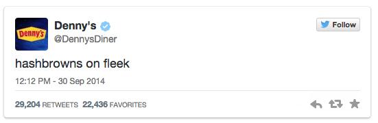 @WSJ #COMM267 #c295s15 companies like @DennysDiner are using "Twitter speak" on their social media posts