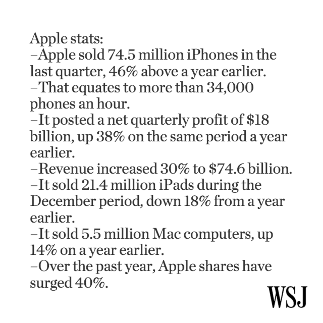 “@WSJ: Apple's mind-boggling quarter: http://on.wsj.com/1D8BEFO pic.twitter.com/ITbQwIgyHn”