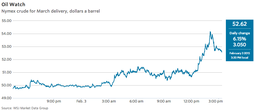 RT @WSJ: Oil prices surge 7% to one-month high: http://on.wsj.com/1K8ECPj pic.twitter.com/EL3fcKzbpm