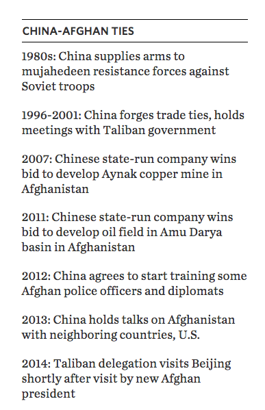 RT @WSJ: As the U.S. exits, China takes on a greater Afghanistan role http://on.wsj.com/1CcLll4 pic.twitter.com/NkJgaUJOw0