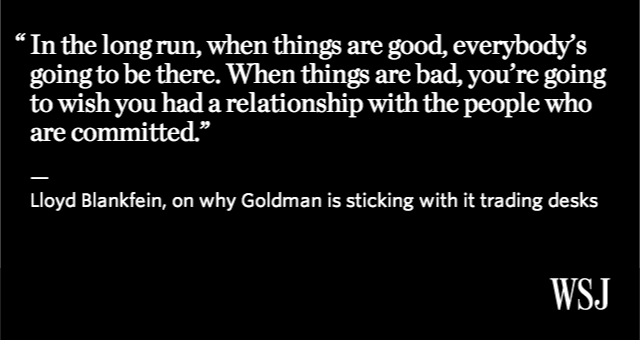 “@WSJ: Goldman Sachs is taking the long view on its trading desks: http://on.wsj.com/1ArlIQZ pic.twitter.com/tiitmtdEoV” #Truth #HumanValue