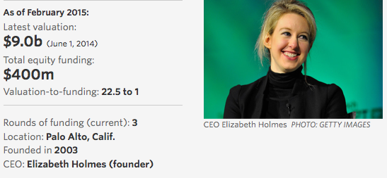 Billion Dollar Startup Club No. 9: Theranos. A health care disruptor. Valued at $9B. http://on.wsj.com/1G8eT7i pic.twitter.com/H5ffnMNTMW