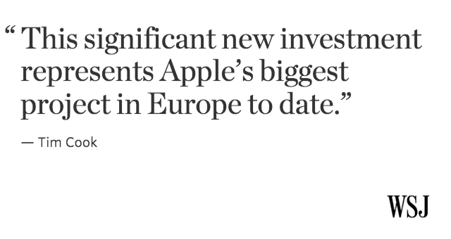 @WSJ: Apple to invest $1.9 billion to build data centers in Ireland and Denmark http://on.wsj.com/1FNVTNS pic.twitter.com/2d6dNhGlDi”