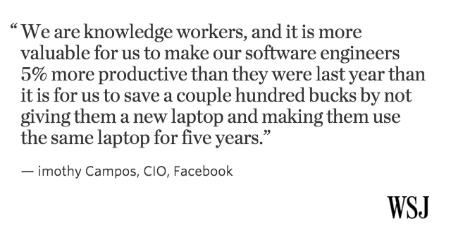 Ejemplo a seguir! “@WSJ: What's the key to Facebook’s productivity? Here's a Q&A with the CIO http://on.wsj.com/1DJrpvV pic.twitter.com/LCTQJlo6ba”