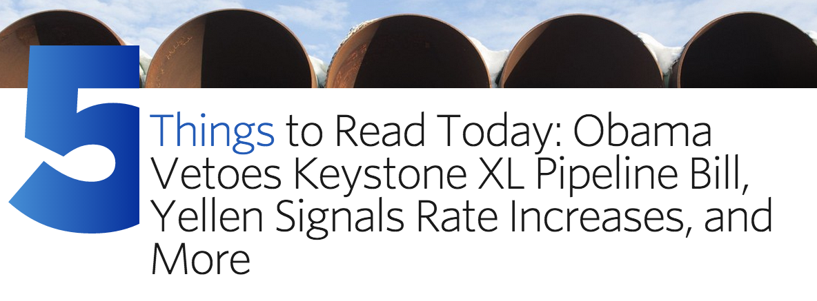 @WSJ: Obama vetoes the Keystone XL Pipeline bill and more of today's top news: http://on.wsj.com/17UAUdI pic.twitter.com/4WsCjjuSjn”#dubizsoc