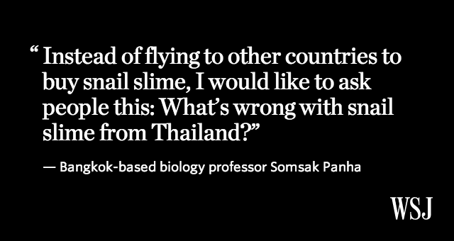 Good question. @WSJ: Thai professor is trying to encourage people to buy snail slime locally: http://on.wsj.com/1DzJhGW pic.twitter.com/EA4NYkBFPu”