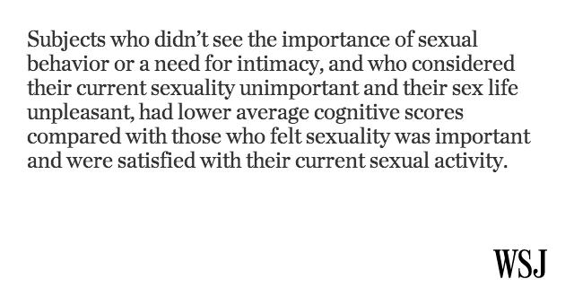 @WSJ: Sex in old age may lead to a sharper mind, study finds http://on.wsj.com/1AxdCBc pic.twitter.com/BwXboig9Zf”