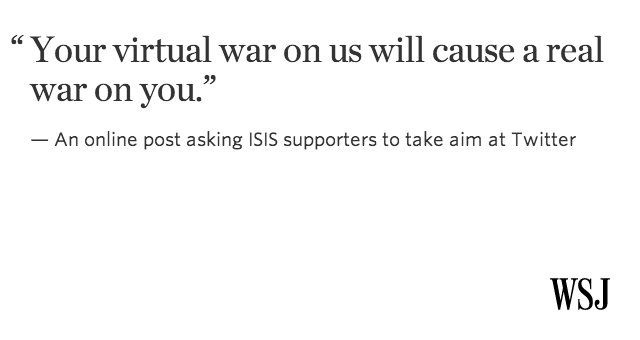 “@WSJ: Twitter says law enforcement is investigating a purported threat by ISIS, shit people: http://on.wsj.com/1vUqi9S pic.twitter.com/S5utaMc9kp”