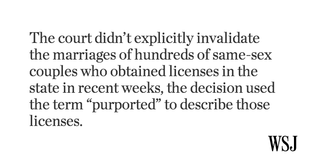 @WSJ: The Alabama Supreme Court orders halt to gay marriage licenses: http://on.wsj.com/1B0F0wv pic.twitter.com/YaRmTTYheC”#TwitterNewsChat