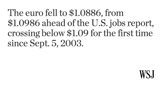 “@WSJ: The dollar is now up to an 11-year high against the euro, which fell to $1.0886. pic.twitter.com/hAKGnH7eAL”Let's swap freely.