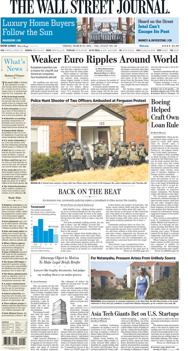On the front page of today’s paper, the weaker euro, community policing, Boeing crafting its own loan rulepic.twitter.com/Fk5ZrW04qC