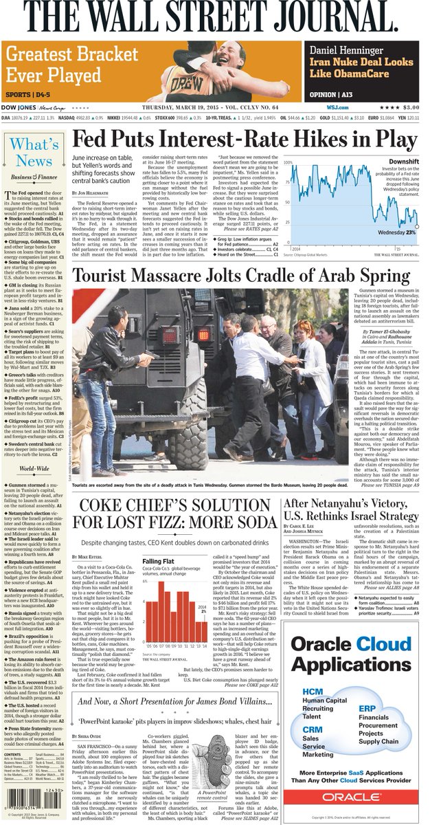 The Fed, a tourist massacre, Coke's fizz and "PowerPoint karaoke." Today's front page http://www.wsj.com pic.twitter.com/xTO4S6v1fb
