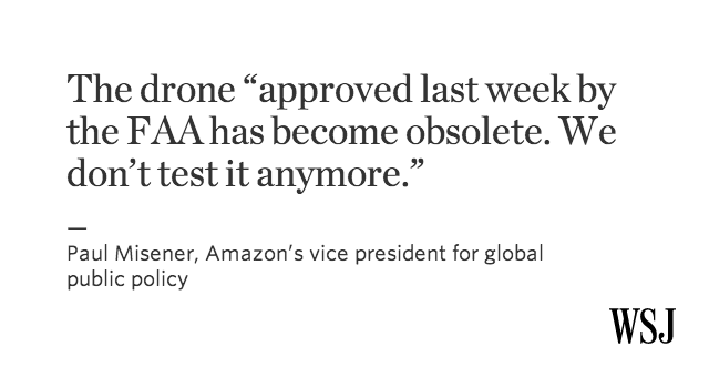 Classic... RT @WSJ: Amazon says approval it received last week to test-fly delivery drones is irrelevant: http://on.wsj.com/1xvqQ7g $AMZN