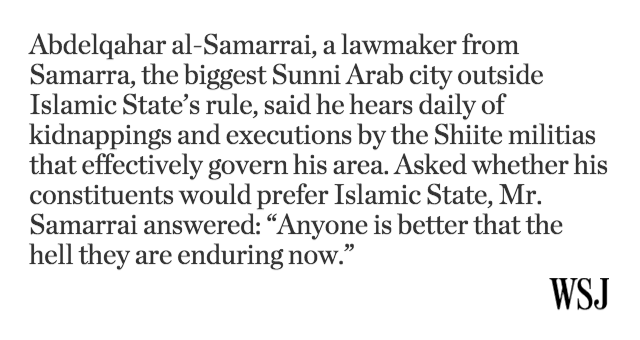 @WSJ @yarotrof Consequence of the gift of 'freedom' by 'shock & awe' America & friends gave #Iraq
