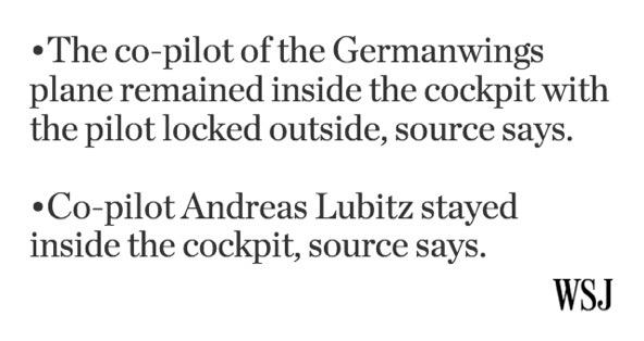 What?! RT"@WSJ: New details on Germanwings: pilot locked outside; the co-pilot was in cockpit http://on.wsj.com/1xBqqwn pic.twitter.com/7LvhYwrI8V”