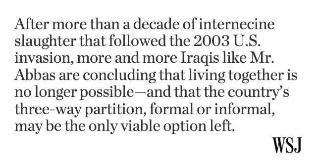 @WSJ: Iraq is inching toward a 3-way split, writes@yarotrof http://on.wsj.com/1D15d0I pic.twitter.com/sdYZflV3hi”#hatsoff to#OIF vets' efforts