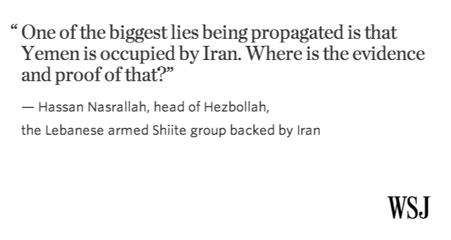 “@WSJ: The head of Hezbollah berated Saudi Arabia for launching airstrikes in Yemen" same group who took Americans hostage and killed usmc's