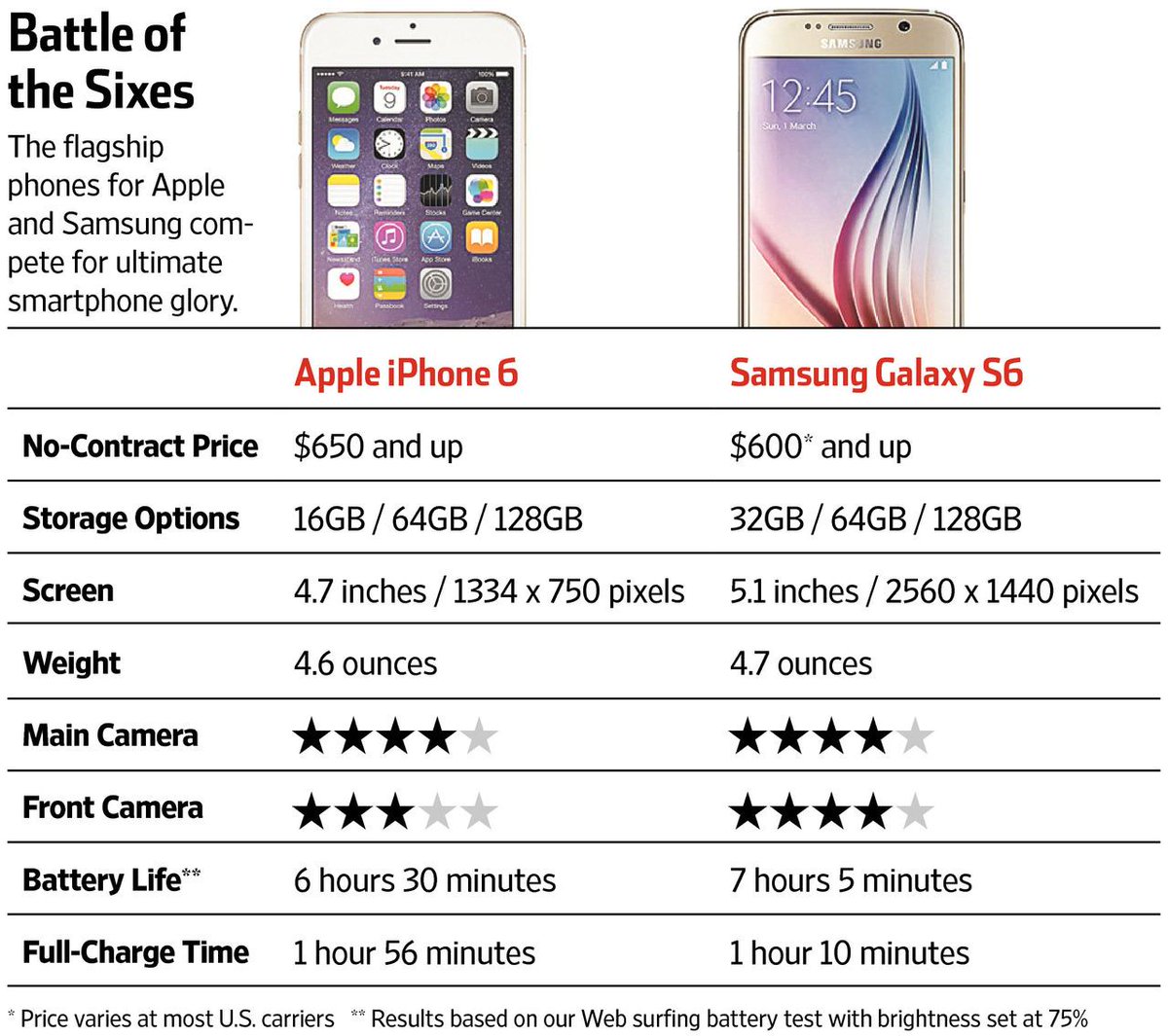 @WSJ: Why the Galaxy S6 is as good as the iPhone: http://on.wsj.com/1NQfDCf pic.twitter.com/e6WVKPUl7A” SIXES