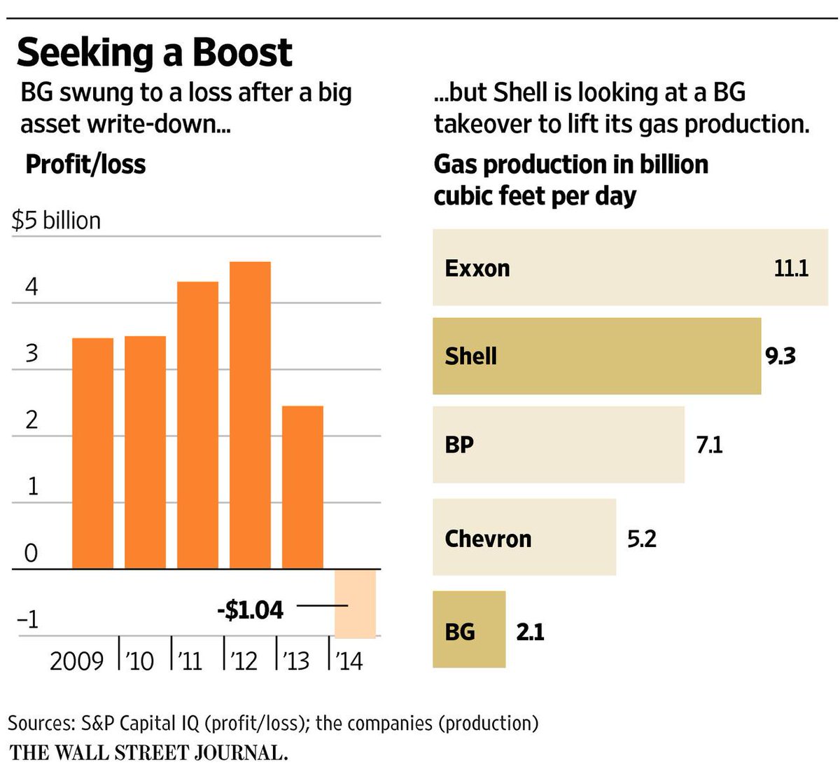 “@WSJ: Shell in advanced talks to buy BG Group, likely to be valued at upward of $50 billion http://on.wsj.com/1ClvSi9 pic.twitter.com/TzxOGUbP52”