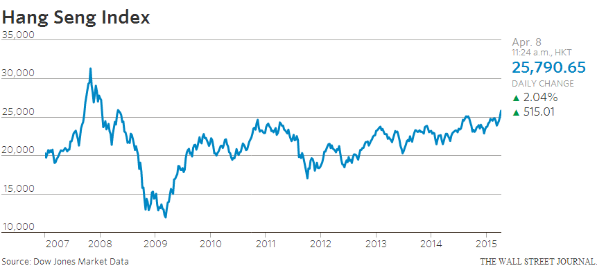 @WSJ: Hong Kong stocks hit 7-year high, helped by a flood of cash from China http://on.wsj.com/1ClM5nL pic.twitter.com/11u8N8mcYT”