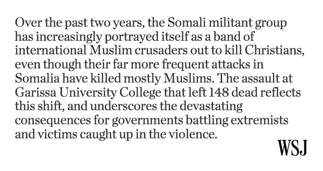 @WSJ@HeidiVogt Islamism first goal is to eliminate all Christian's from the ME and Africa. Killing fellow Muslims is for other reason.Thanks. Twitter will use this to make your timeline better. UndoUndo