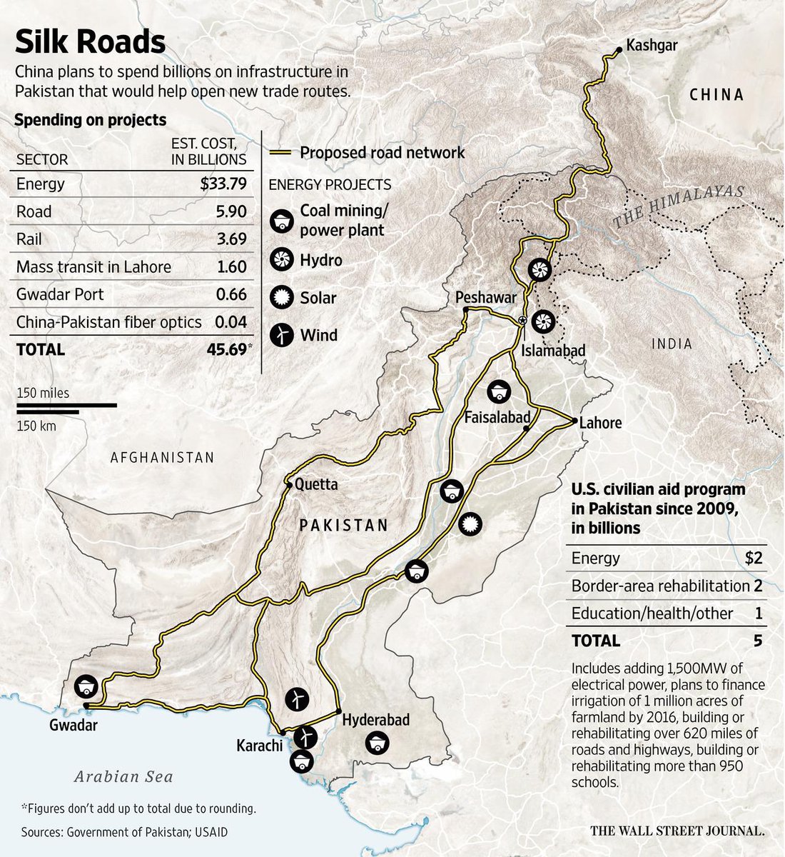 @WSJ: China plans to spend $46 billion on infrastructure in Pakistan, dwarfing U.S. program http://on.wsj.com/1aN7AqK pic.twitter.com/NnGIJ76ezV”