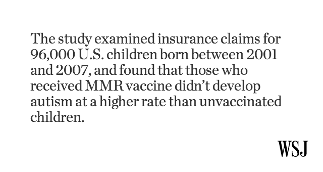 @WSJ: Another medical study shows no link between MMR vaccine and autism: http://on.wsj.com/1JuGVLf pic.twitter.com/jZvxGtf0nD