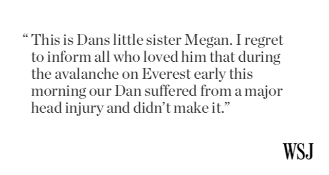 Google executive Dan Fredinburg killed in Everest avalanche after Nepal earthquake http://on.wsj.com/1IbQbpw pic.twitter.com/66eWS6FXDs