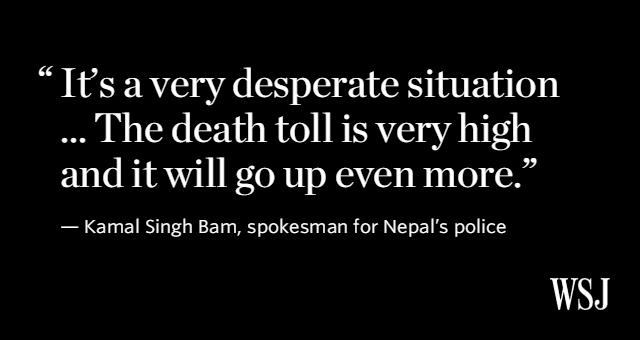 @WSJ: Nepal rescuers struggle to reach quake victims, 3,200 confirmed dead http://on.wsj.com/1b5t9Da pic.twitter.com/exRM7xy2Ox”