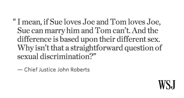 @WSJ would that logic (referencing Justice Roberts quote pictured) also make female-exclusive pregnancy an act of sexual discrimination?Thanks. Twitter will use this to make your timeline better. UndoUndo