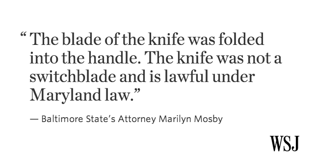 @WSJ legal. It was not a switchblade. Even if it was, they are legal to hold in Maryland. -