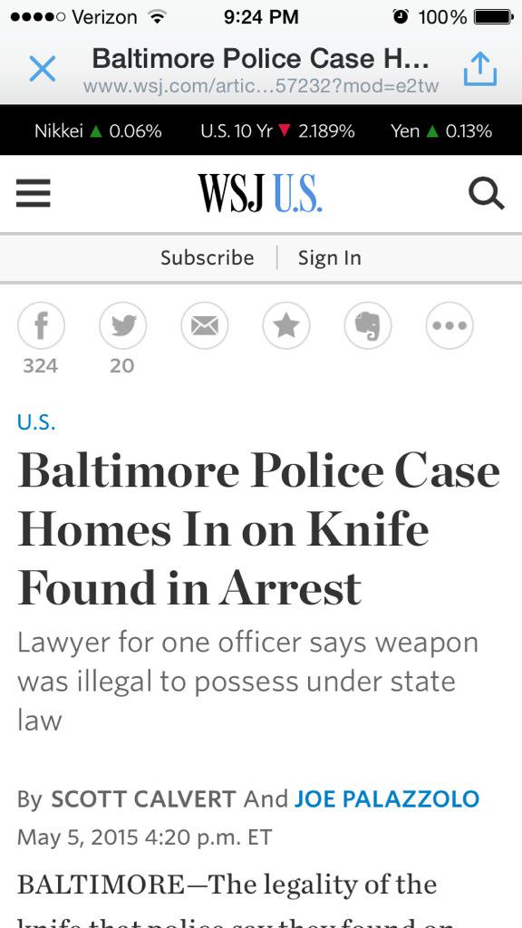 @WSJ So it's okay to carry a butcher knife or machete on the streets of Baltimore? Just what section of Maryland law applies anyway?