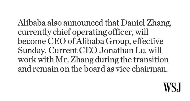 Alibaba names new CEO as it reports better-than-expected revenue rise during March quarter http://on.wsj.com/1GQSUA6 pic.twitter.com/L7BJRupYfY