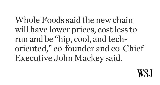 @WSJ: Whole Foods plans to start a new chain of smaller, cheaper stores: http://on.wsj.com/1zFS2AZ pic.twitter.com/Vl61mrRZn6”