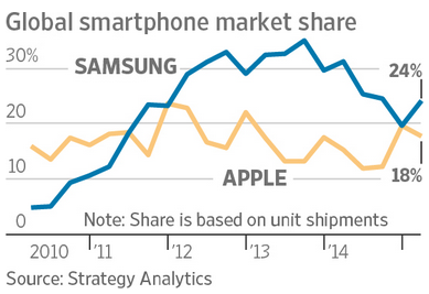 @WSJ:#Samsung was the only company to outsell#Apple in smartphones last year http://on.wsj.com/1zUN2sp pic.twitter.com/BIMB8nP7q7”#marketshare