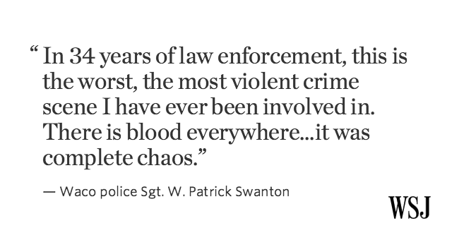 I'm sure the cops used tear gas...right? MT @WSJ At least five rival gangs involved in Waco biker gang shootout http://on.wsj.com/1FtmrVR