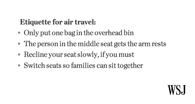 MT “@WSJ: Air travel etiquette tips: http://on.wsj.com/1JAm3ER pic.twitter.com/BD6kZajC3m” Or how about airlines restore decent & basic services?!