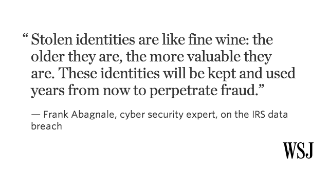 @WSJ@gerardtbaker on the latest on the IRS data breach and more: http://on.wsj.com/1ezmp2M pic.twitter.com/iormVHoD1W” ID breach to worry about!